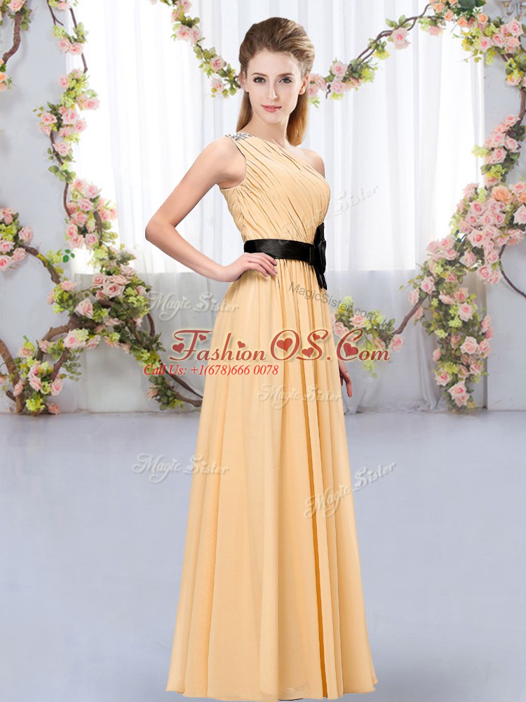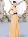 Sleeveless Chiffon Floor Length Zipper Dama Dress for Quinceanera in Orange with Belt