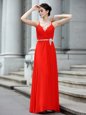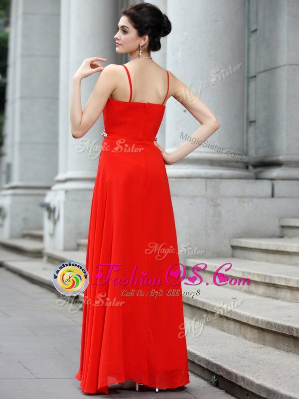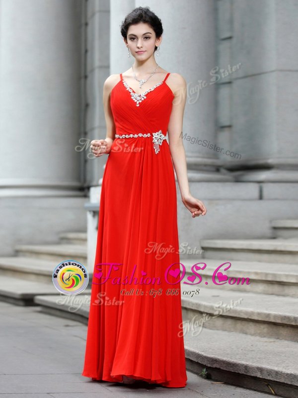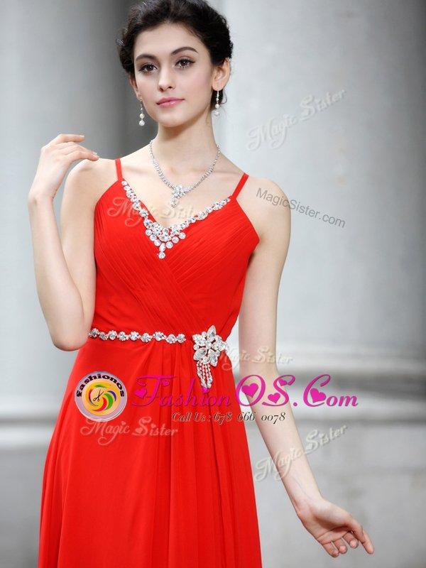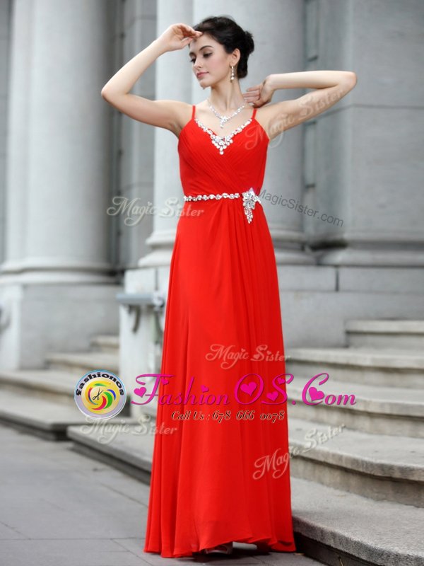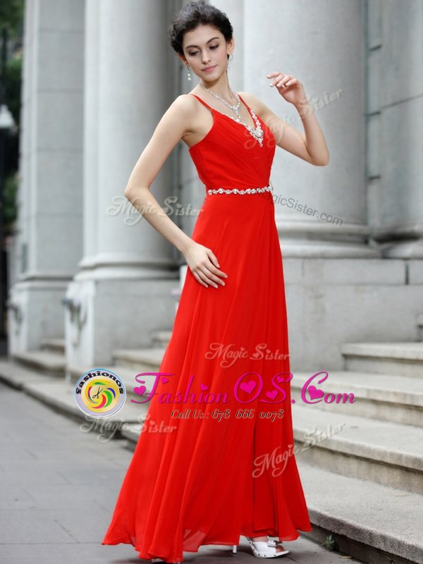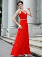 Home >  Prom Dresses >  Perfect Prom Dresses > Sleeveless Chiffon Floor Length Zipper Dress for Prom in Coral Red for with Beading
