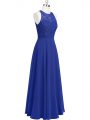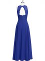 Sleeveless Chiffon Floor Length Zipper Evening Dress in Royal Blue with Lace