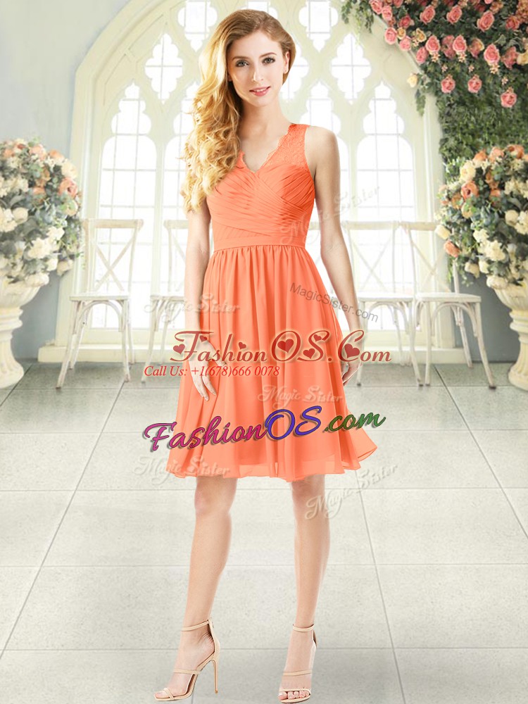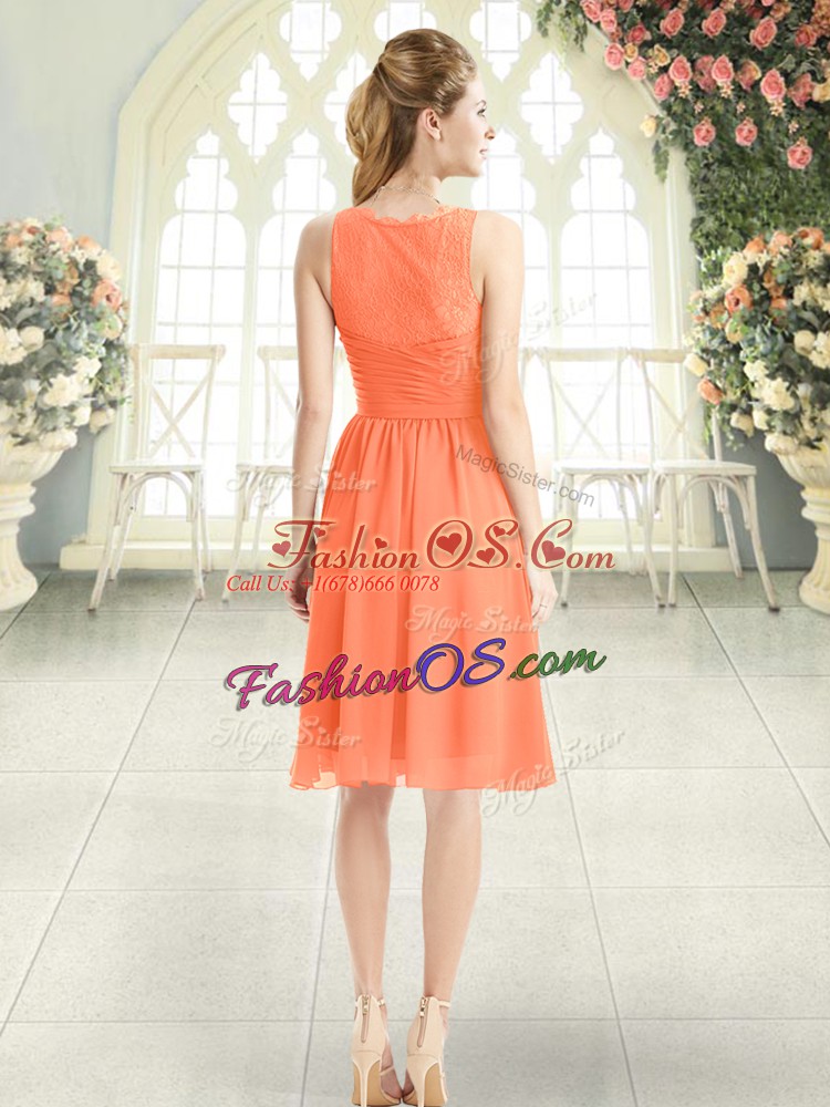 Sleeveless Chiffon Knee Length Side Zipper Prom Evening Gown in Orange with Lace