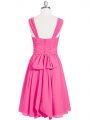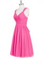 Sleeveless Chiffon Mini Length Zipper Evening Dress in Pink with Ruching