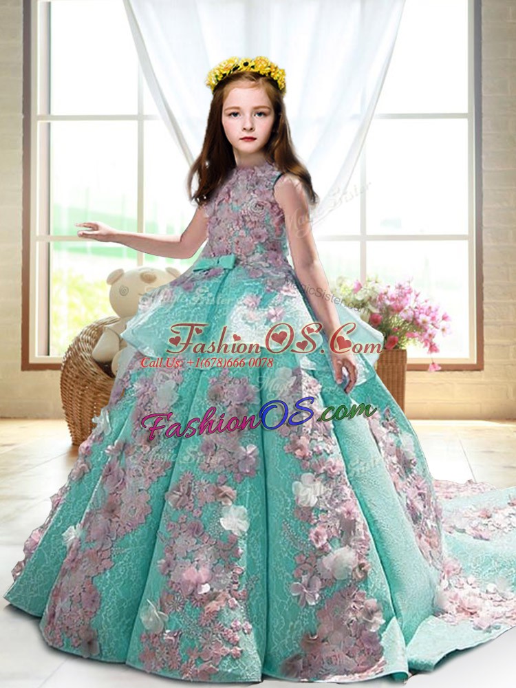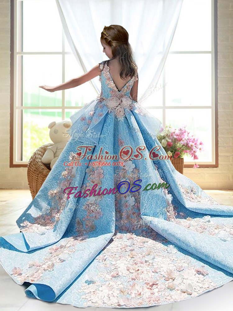 Sleeveless Court Train Appliques Backless Little Girl Pageant Dress