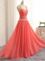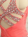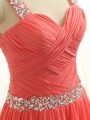Sleeveless Criss Cross Floor Length Beading and Ruching