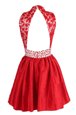 Home >  Prom Dresses >  Popular Prom Dresses > Sleeveless Criss Cross Knee Length Beading and Lace