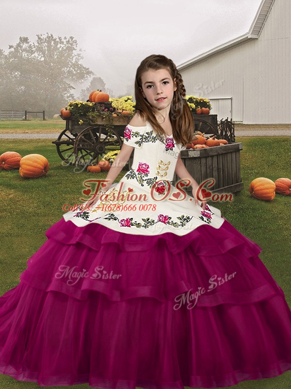 Sleeveless Embroidery and Ruffled Layers Lace Up Girls Pageant Dresses