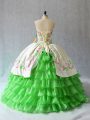Sleeveless Embroidery and Ruffled Layers Lace Up Sweet 16 Dresses