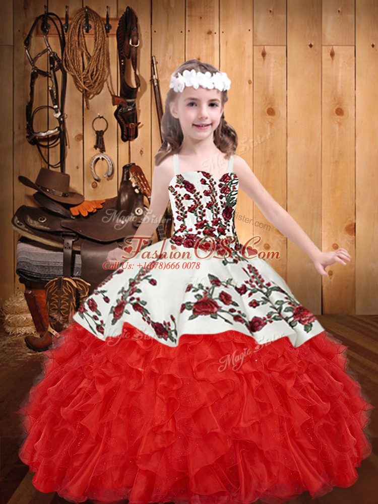 Sleeveless Embroidery and Ruffles Lace Up Girls Pageant Dresses