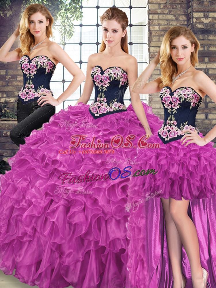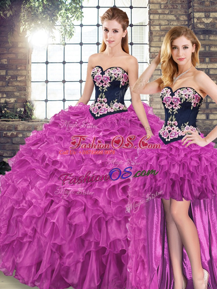 Home >  Quinceanera Dresses >  Removable Skirt Quinceanera Dresses > Sleeveless Embroidery and Ruffles Lace Up Quinceanera Dresses with Fuchsia Sweep Train