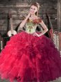 Sleeveless Embroidery and Ruffles Lace Up Quinceanera Gowns