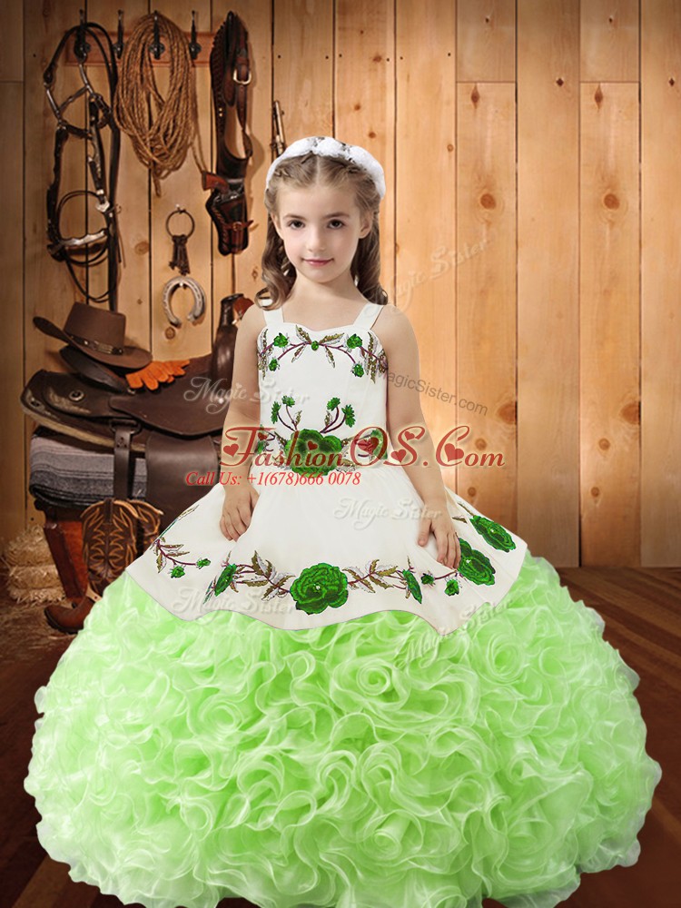 Home >  Special Occasion Dresses >  Beautiful Kids Pageant Dresses > Sleeveless Fabric With Rolling Flowers Floor Length Lace Up Pageant Dress Wholesale in Yellow Green with Embroidery and Ruffles