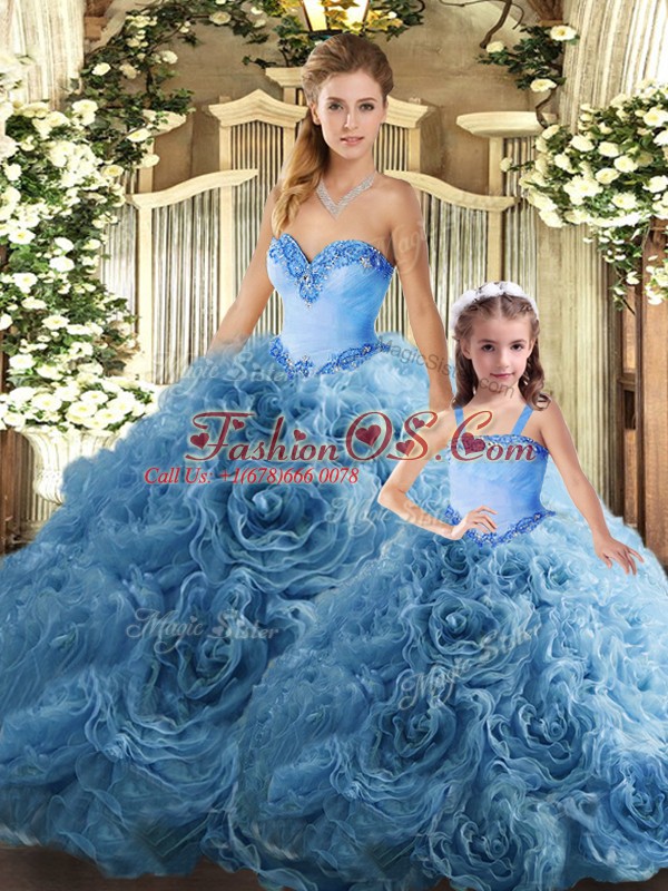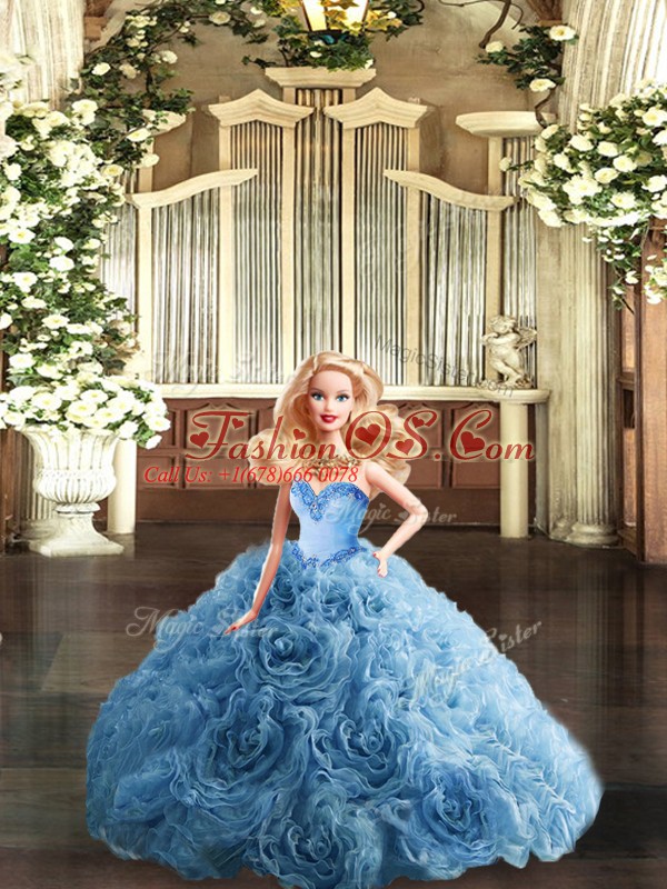 Home >  Quinceanera Dresses >  Detachable Quinceanera Skirts > Sleeveless Fabric With Rolling Flowers Floor Length Lace Up Sweet 16 Quinceanera Dress in Teal with Beading