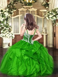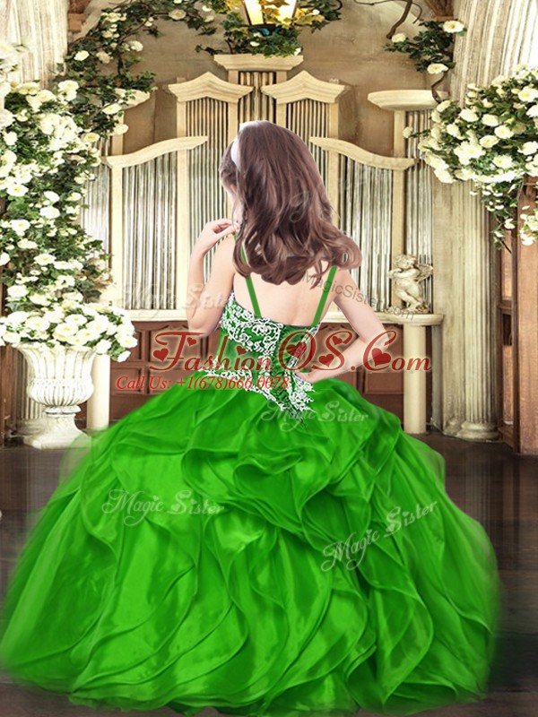 Sleeveless Floor Length Appliques and Ruffles Lace Up Girls Pageant Dresses with Blue
