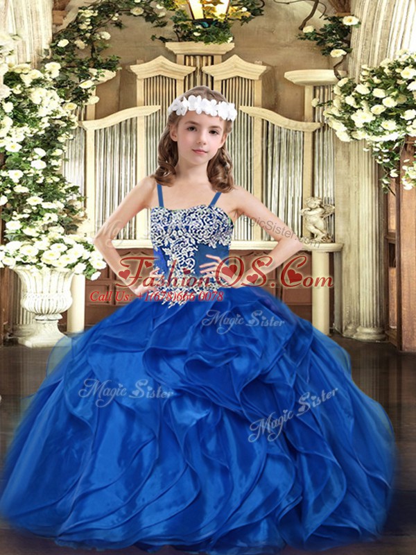 Home >  Special Occasion Dresses >  Lovely Little Girl Pageant Dresses > Sleeveless Floor Length Appliques and Ruffles Lace Up Girls Pageant Dresses with Blue