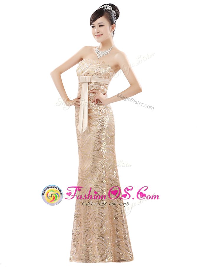 Sleeveless Floor Length Appliques Zipper Prom Dress with Champagne