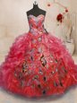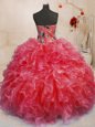 Sleeveless Floor Length Beading and Appliques and Ruffles Zipper Quinceanera Gowns with Red