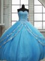Sleeveless Floor Length Beading and Appliques and Sequins Lace Up 15th Birthday Dress with Baby Blue