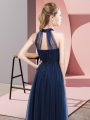 Sleeveless Floor Length Beading and Appliques Lace Up Bridesmaid Gown with Olive Green