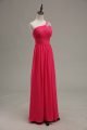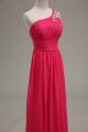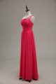Sleeveless Floor Length Beading and Ruching Zipper Prom Dresses with Hot Pink