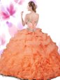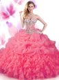 Sleeveless Floor Length Beading and Ruffles and Pick Ups Lace Up Sweet 16 Quinceanera Dress with Hot Pink