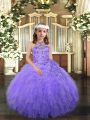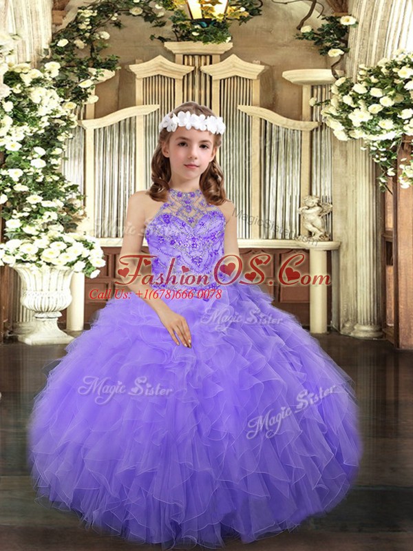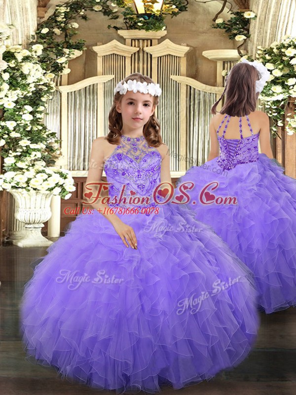 Sleeveless Floor Length Beading and Ruffles Lace Up Pageant Dress Toddler with Lavender