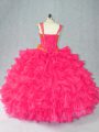 Sleeveless Floor Length Beading and Ruffles Lace Up Quinceanera Dresses with Red