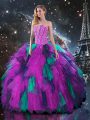 Sleeveless Floor Length Beading and Ruffles Lace Up Quinceanera Gowns with Multi-color