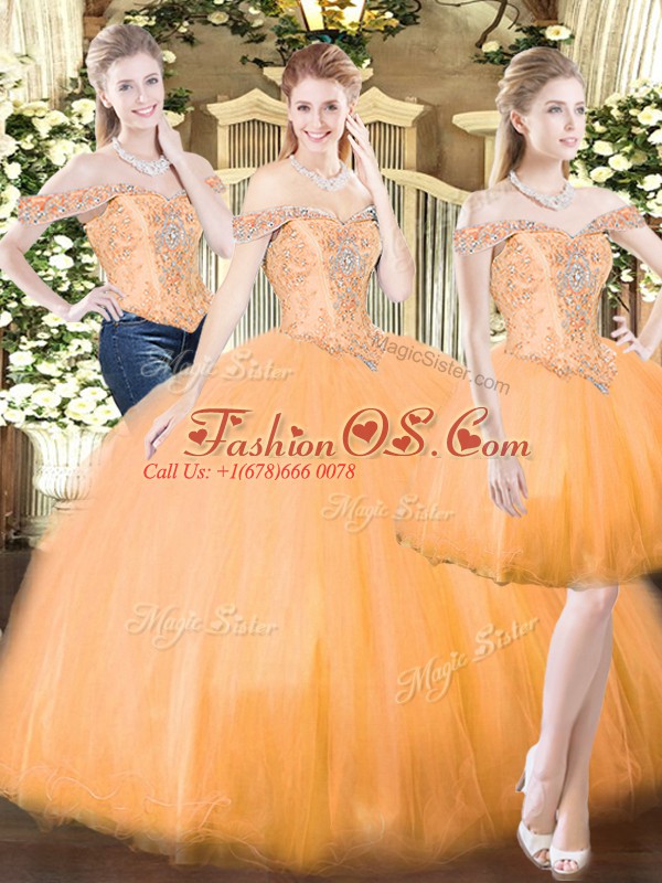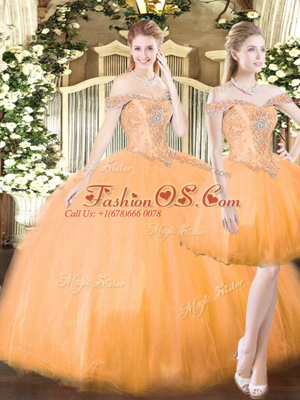 Home >  Quinceanera Dresses >  Detachable Quinceanera Skirts > Sleeveless Floor Length Beading and Ruffles Lace Up Quinceanera Gowns with Orange Red