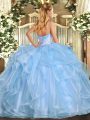 Home >  Quinceanera Dresses >  Sweet 16 Dresses > Sleeveless Floor Length Beading and Ruffles Lace Up Quinceanera Gowns with Rose Pink
