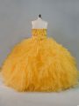 Sleeveless Floor Length Beading and Ruffles Lace Up Sweet 16 Dress with Gold