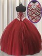 Home >  Quinceanera Dresses >  Sweet 16 Dresses > Sleeveless Floor Length Beading and Sequins Lace Up 15th Birthday Dress with Red
