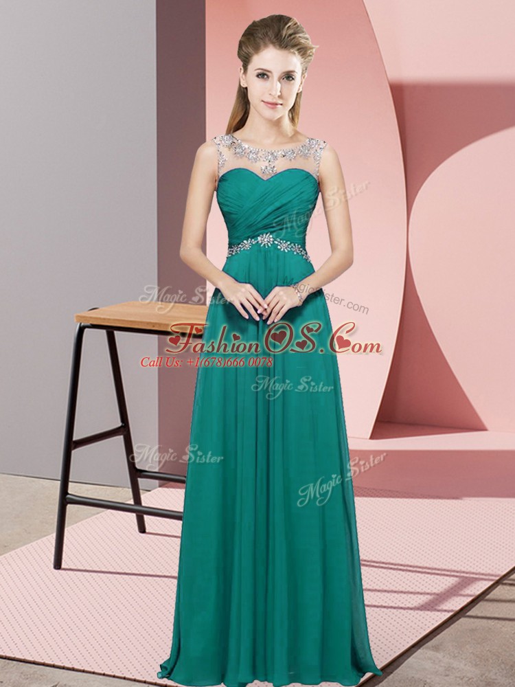Sleeveless Floor Length Beading Backless Evening Dress with Turquoise
