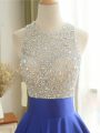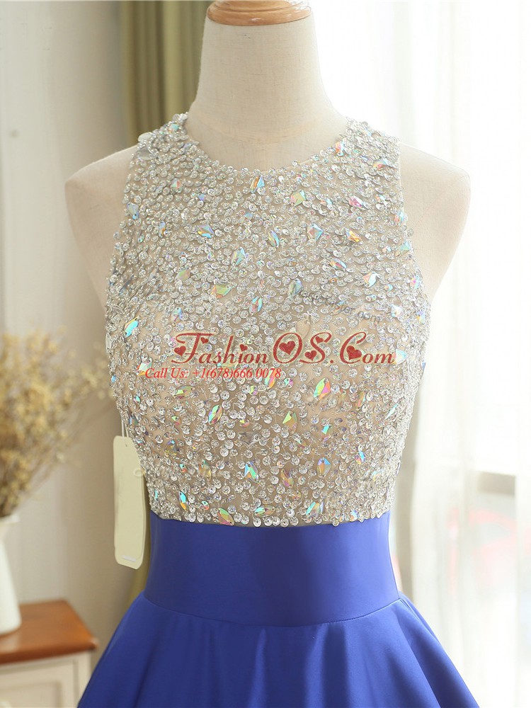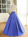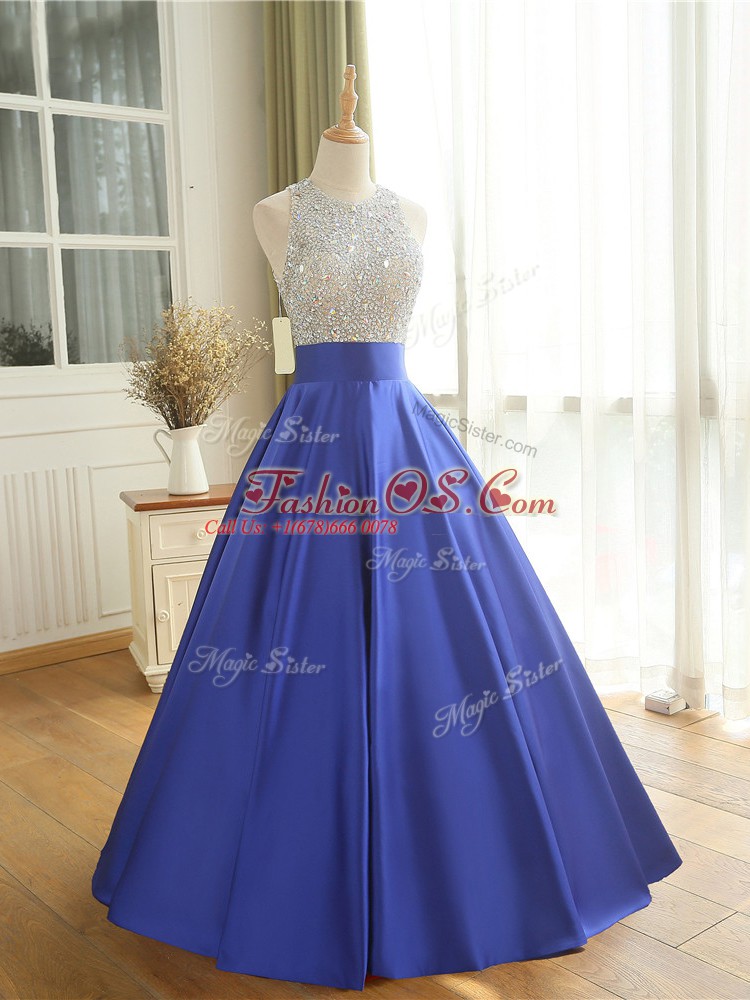 Sleeveless Floor Length Beading Backless Prom Dress with Blue