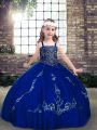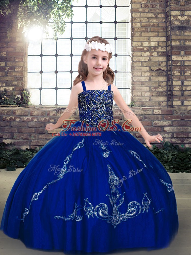 Sleeveless Floor Length Beading Lace Up Child Pageant Dress with Royal Blue