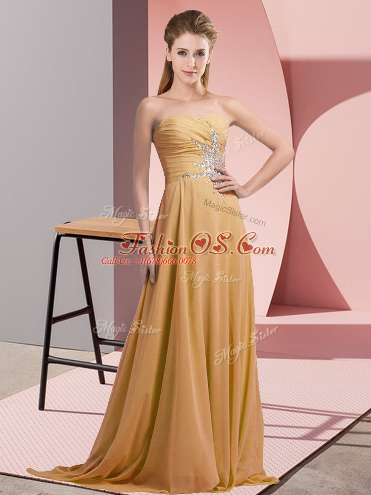 Sleeveless Floor Length Beading Lace Up Mother Of The Bride Dress with Gold