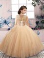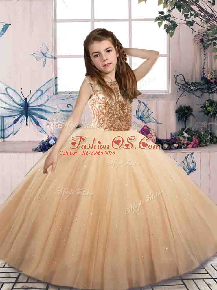 Sleeveless Floor Length Beading Lace Up Pageant Gowns For Girls with Champagne