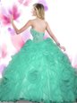 Sleeveless Floor Length Beading Lace Up Quince Ball Gowns with Turquoise