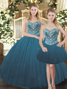 Home >  Quinceanera Dresses >  Detachable Quinceanera Skirts > Sleeveless Floor Length Beading Lace Up Quinceanera Dress with Teal