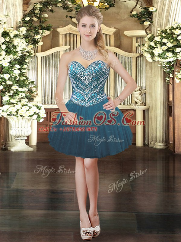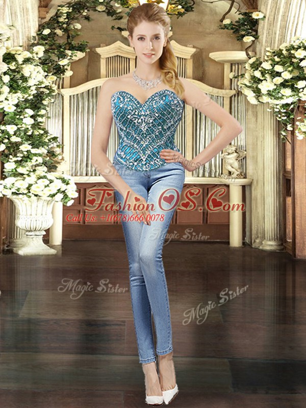 Sleeveless Floor Length Beading Lace Up Quinceanera Dress with Teal