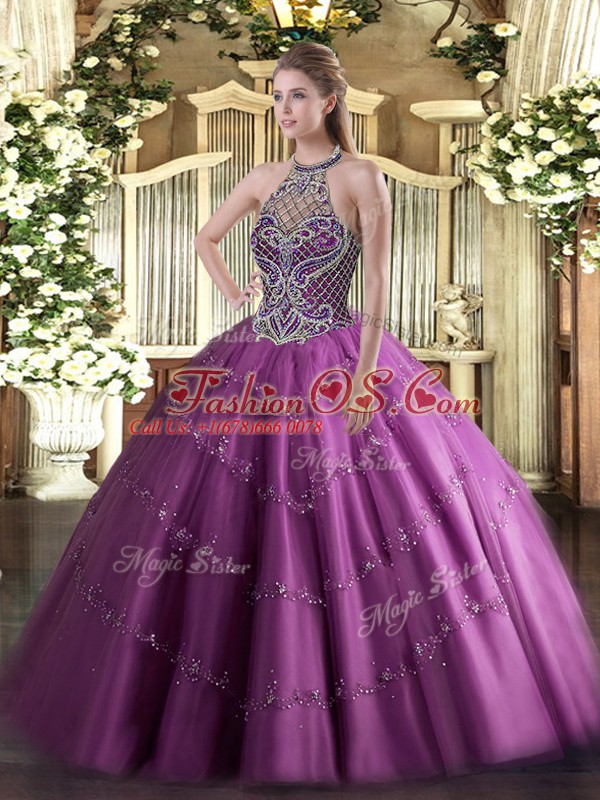 Home >  Quinceanera Dresses >  Fast Delivery Quinceanera Dresses > Sleeveless Floor Length Beading Lace Up Vestidos de Quinceanera with Lilac