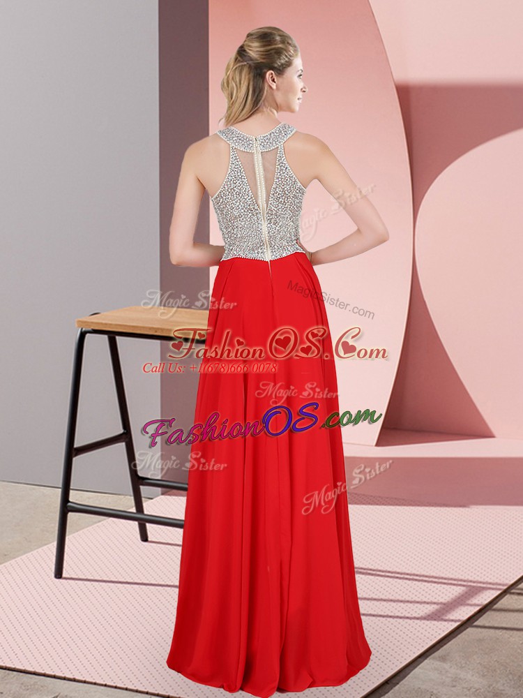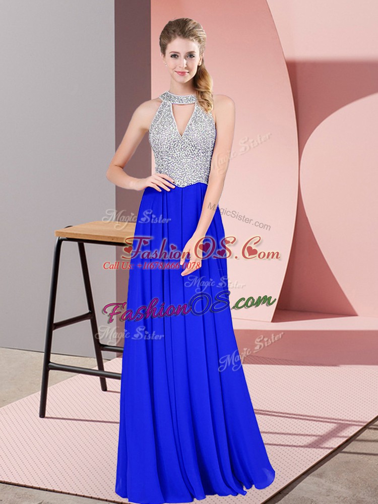 Sleeveless Floor Length Beading Zipper Prom Evening Gown with Royal Blue