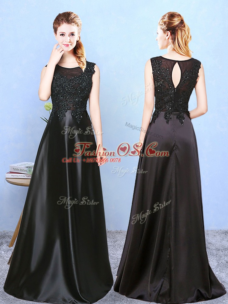 Sleeveless Floor Length Beading Zipper Vestidos de Damas with Black