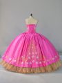 Sleeveless Floor Length Embroidery Lace Up Vestidos de Quinceanera with Rose Pink