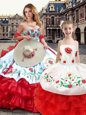 Home >  Quinceanera Dresses >  Princesita with Quinceanera Dresses > Sleeveless Floor Length Embroidery Lace Up Vestidos de Quinceanera with White And Red