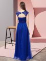Sleeveless Floor Length Lace Zipper Evening Dress with Royal Blue