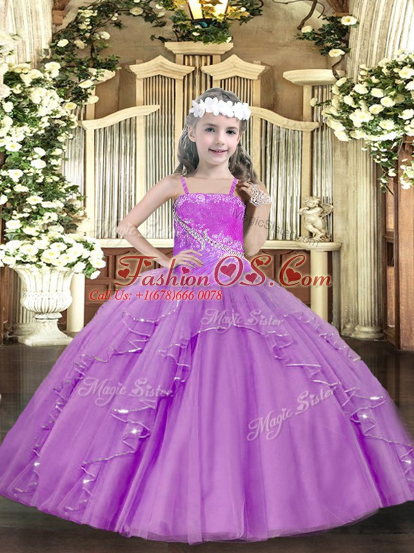 Home >  Special Occasion Dresses >  Lovely Little Girl Pageant Dresses > Sleeveless Floor Length Ruffles and Sequins Lace Up Little Girl Pageant Gowns with Lilac
