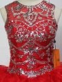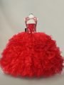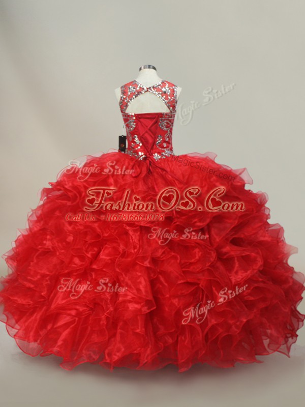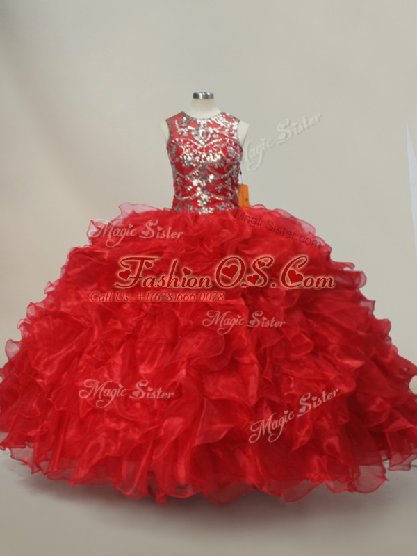 Sleeveless Floor Length Ruffles and Sequins Lace Up Quinceanera Dresses with Red