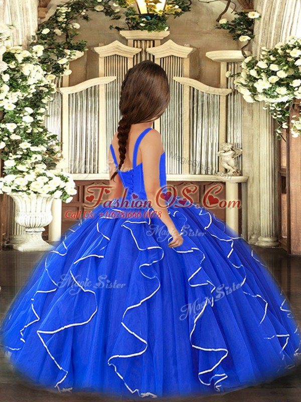 Sleeveless Floor Length Ruffles Lace Up Little Girls Pageant Gowns with Fuchsia