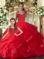 Sleeveless Floor Length Ruffles Lace Up Sweet 16 Dress with Red
