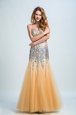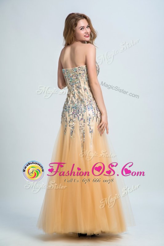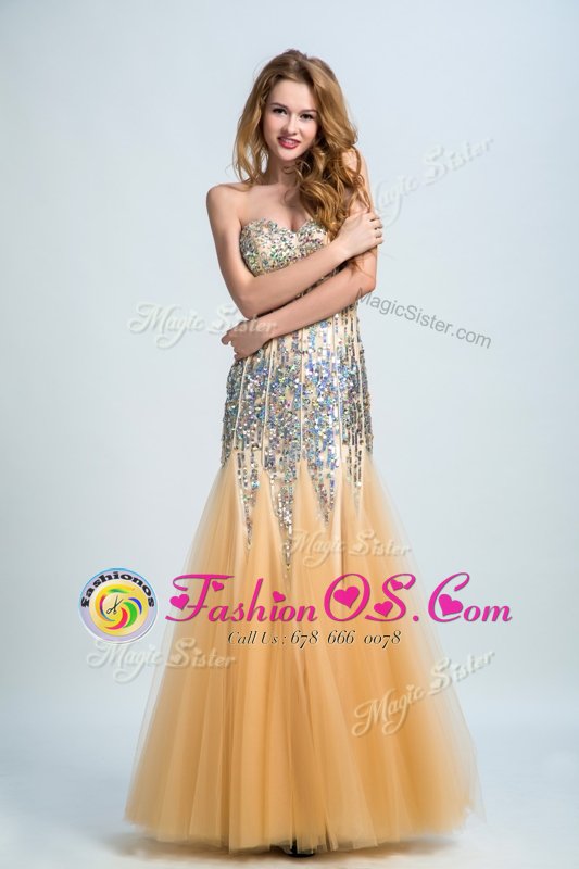 Sleeveless Floor Length Sequins Zipper Oscars Dresses with Gold