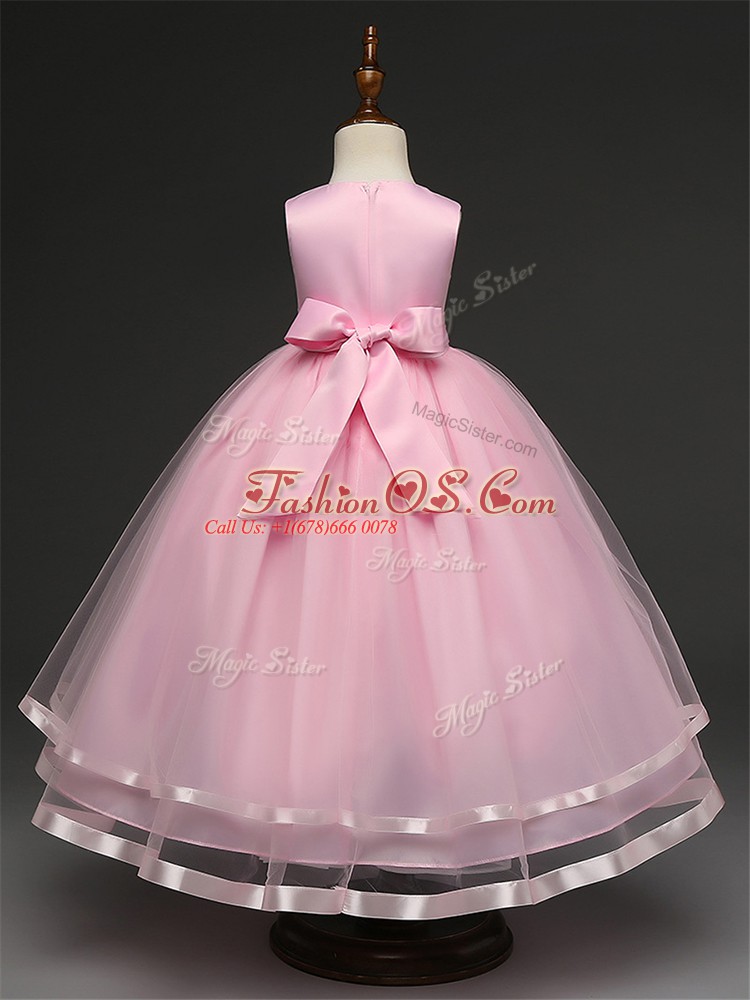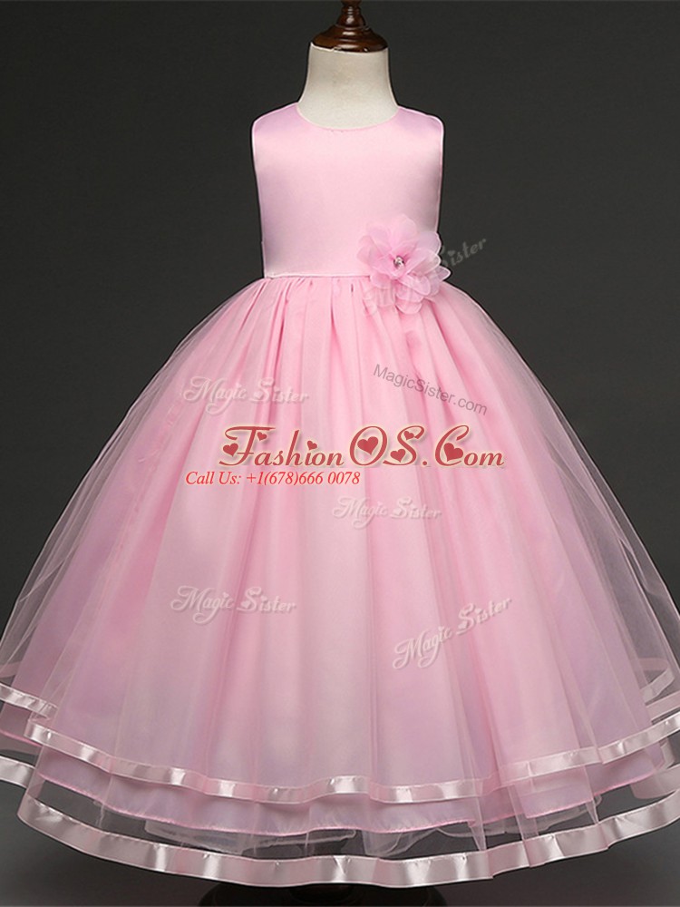 Sleeveless Hand Made Flower Zipper Little Girl Pageant Dress